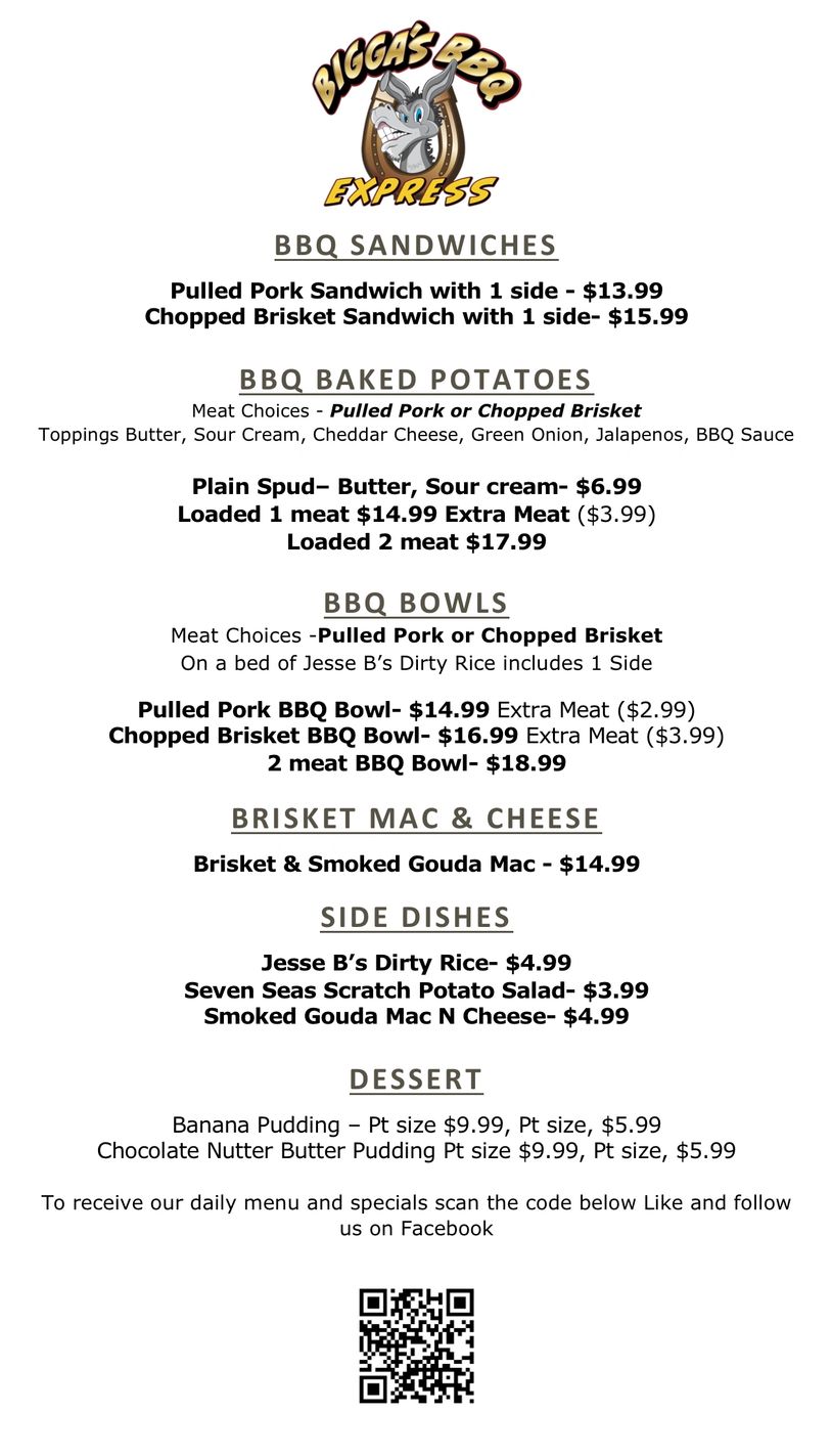 Try one of our mouth watering BBQ or from scratch dishes.