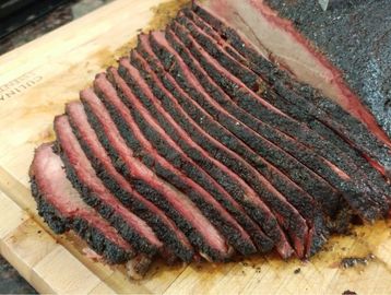 Whole Black Angus beef brisket smoked for 12 hours on post oak and seasoned with Bigga’s Seven Seas Steak Seasoning.