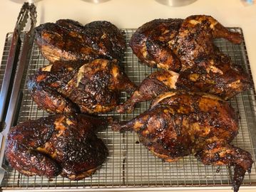 Your choice of leg quarters or whole and spatchcocked broilers. Injected w/ citrus and rubbed w/ our custom spice blend.